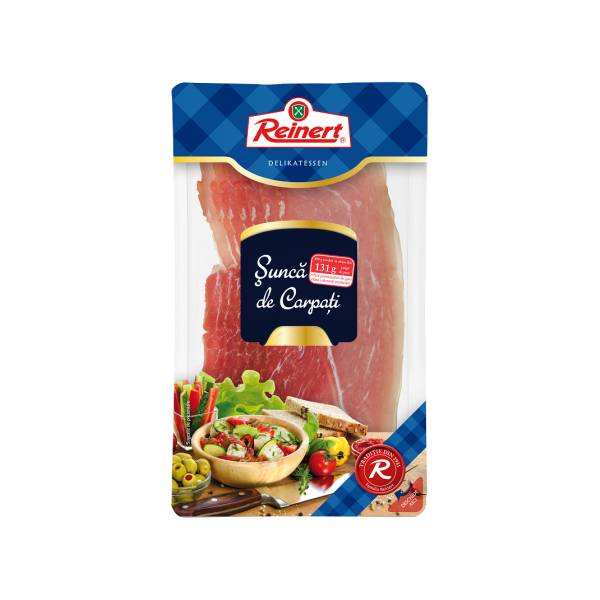 Sunca de Carpati, feliata, 100g, Reinert. Specialitate afumat uscata, afumat cu fum natural.